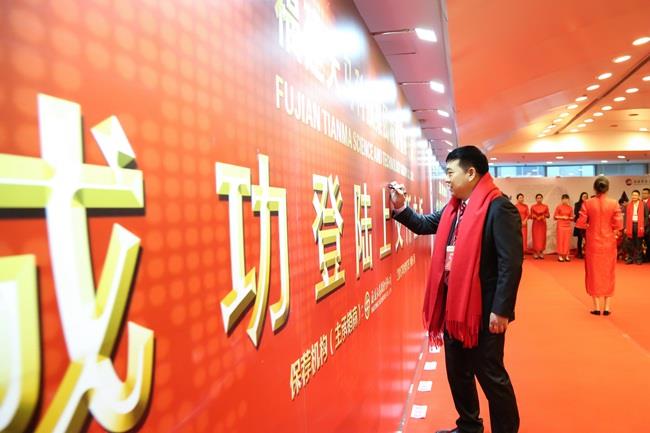 上市儀式上,福清市張帆市長、海通證券瞿秋平總裁分別在發(fā)表了熱情洋溢的致辭,向天馬科技的成功上市表示熱烈祝賀,并表示將一如既往地權利支持天馬科技的發(fā)展。天馬科技陳慶堂董事長與上海證券交易領導簽訂《上市協(xié)議書》,并與上海證券交易領導互贈上市紀念品。