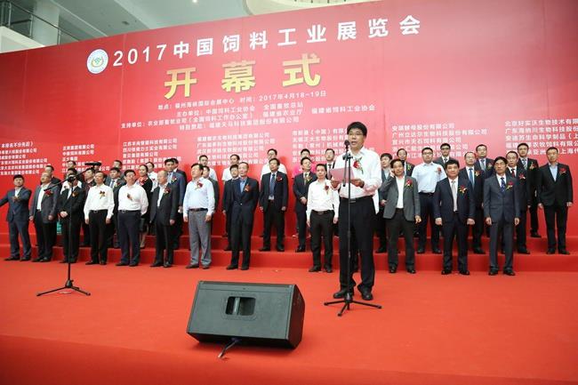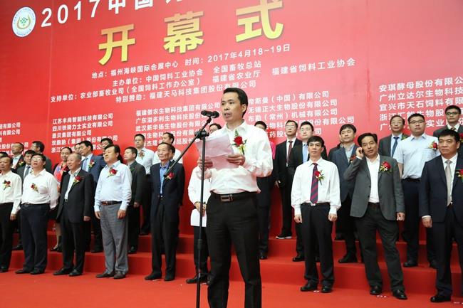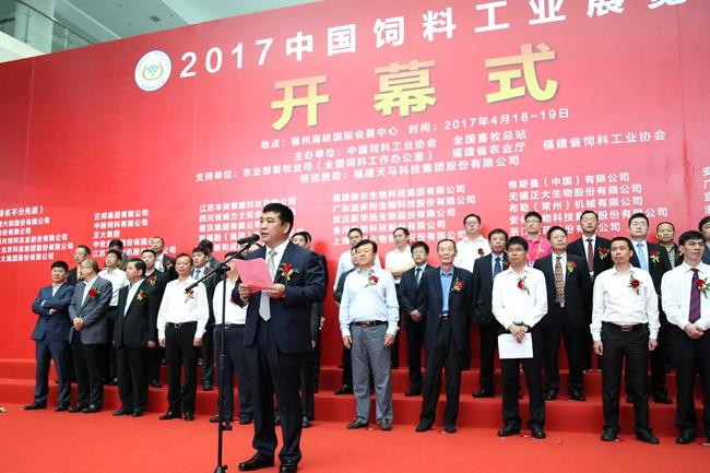 天馬科技訊 4月18日-19日,由中國飼料工業(yè)協(xié)會、全國畜牧總站主辦,福建天馬科技集團股份有限公司(以下簡稱“天馬科技”)特別贊助的行業(yè)盛會——2017中國飼料工業(yè)展覽會暨畜牧業(yè)科技成果推介會在福建省福州海峽國際會展中心隆重舉行。農(nóng)業(yè)部副部長于康震,農(nóng)業(yè)部原副部長、中國飼料工業(yè)協(xié)會顧問高鴻賓,中國飼料工業(yè)協(xié)會會長、中國工程院院士李德發(fā)等領(lǐng)導(dǎo),以及包括天馬科技、海大集團、大北農(nóng)、新希望六合等上市公司在內(nèi)的近400家國內(nèi)外公司參展和數(shù)萬名客商代表、行業(yè)人士參加展會。中國飼料工業(yè)協(xié)會副會長單位、本屆唯一的特別贊助單位天馬科技,以安全、高效、環(huán)保的特種水產(chǎn)飼料及技術(shù)解決方案亮相此次展會,吸引了來自全國各地的客戶,上下游合作伙伴及同行的目光。中國飼料工業(yè)協(xié)會副會長、天馬科技陳慶堂董事長應(yīng)邀出席展會,并在4月18日舉行的展會開幕式上代表全國飼料企業(yè)致辭。