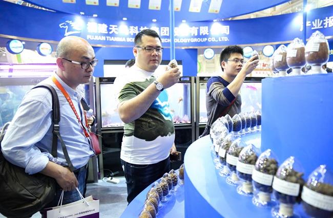 本次展會,天馬科技展館一開館,展臺前就熱鬧非凡,人頭攢動。天馬科技展館設(shè)計獨到,簡潔明快的建筑線條,海洋藍(lán)配上高效節(jié)能、環(huán)保、安全、舒適的綠色照明體系,充滿活力的鰻魚、石斑魚、大黃魚、甲魚、龜、虹鱒等各類特種水產(chǎn)品形象展示無不彰顯了集團高端、大氣的企業(yè)形象,讓天馬科技展館賺足了眼球,成為全場最“吸睛”的展位。各大媒體記者,各大參展商、供應(yīng)商、客戶,以及觀眾紛紛在天馬科技展館駐足流連,并不時向現(xiàn)場的天馬科技工作人員咨詢產(chǎn)品相關(guān)情況。