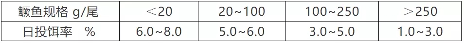 ?根據(jù)池塘鱖魚數(shù)量,參考日投餌表,并根據(jù)氣候、水溫、水質(zhì)、鱖魚生長攝食狀況來推算日投餌量。